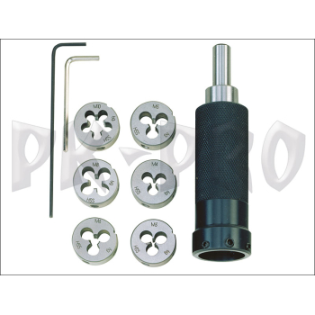 Die holder with dies for M3 to M10 male threads