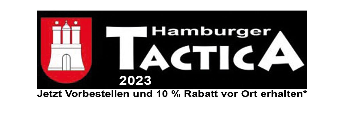 Wie jedes Jahr gibt es bei uns einen 10 % Rabatt* für alle Vorbestellungen, die bei uns mit der Versandart „Messeverkauf“ und dem Kommentar „Hamburger Tactica 2023“ bis zum 15.02.2023 eingehen. Zahlung in Bar oder Karte möglich.